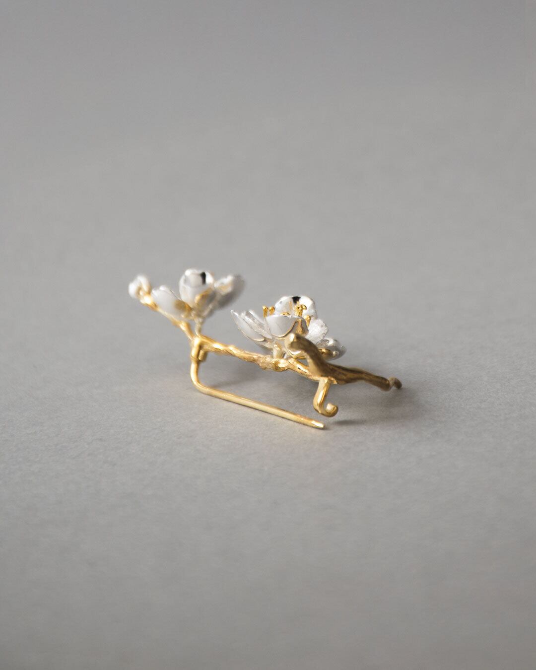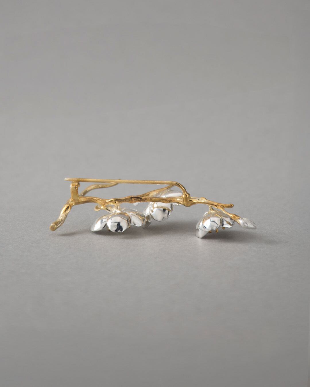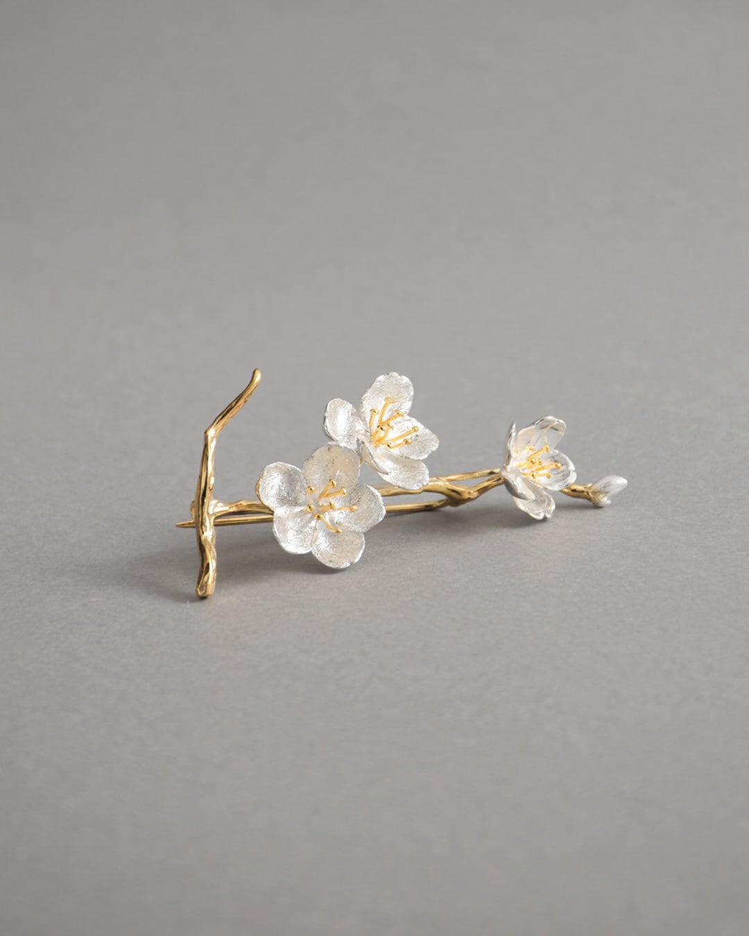 花芯と枝にはK18ゴールドコーティングを、花びらにはシルバーを。