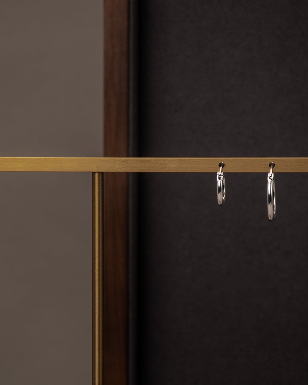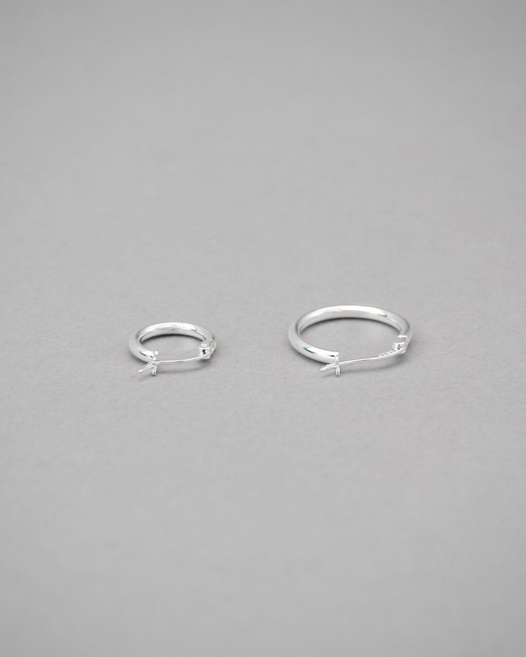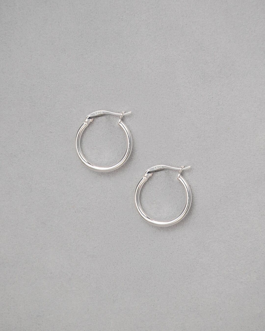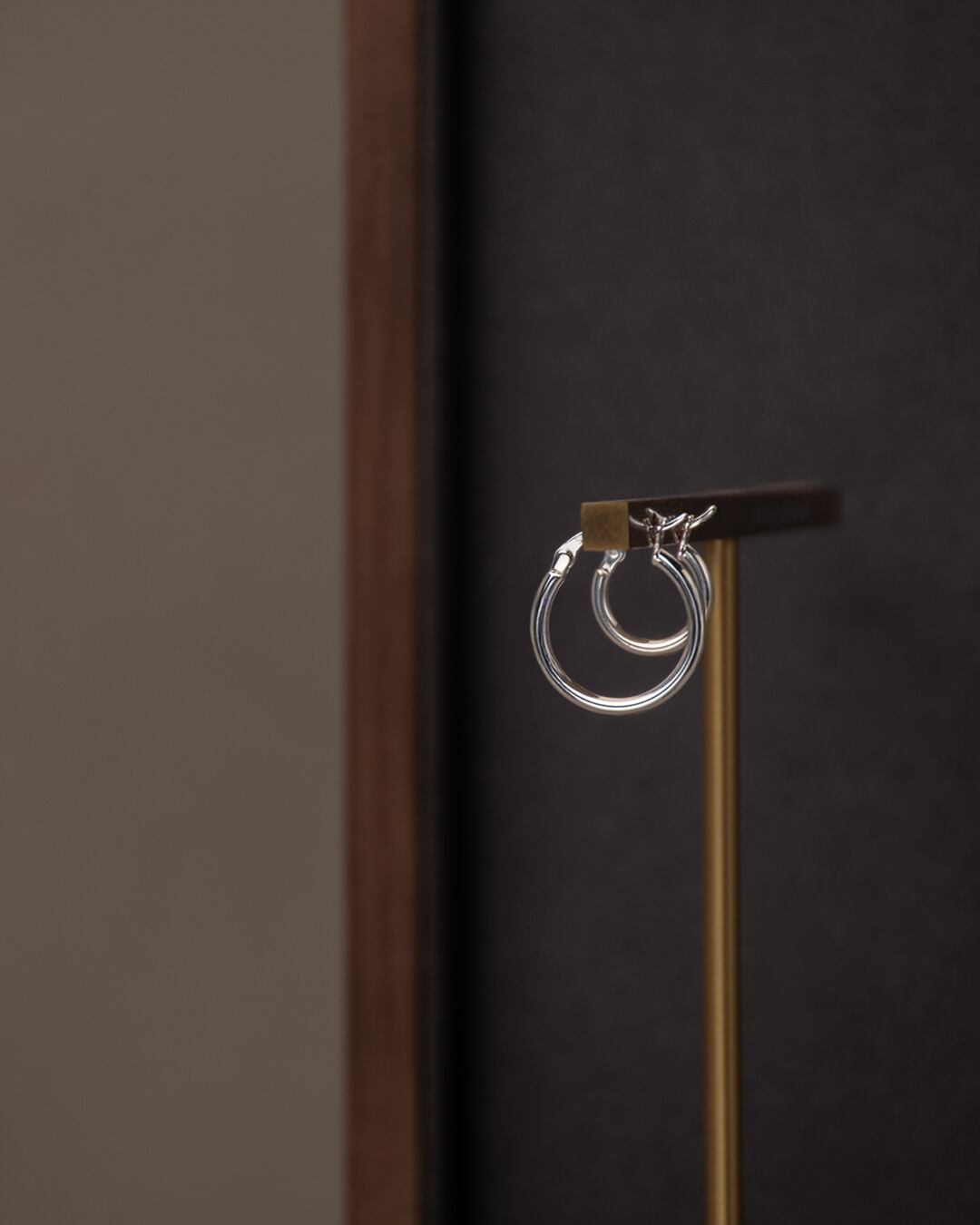 シルバーをやわらかく映す、ミディアムサイズのフープピアス。
