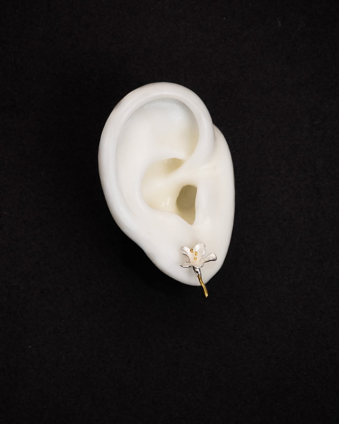 花の根元から茎をのばし、耳のラインに沿う構造へ。